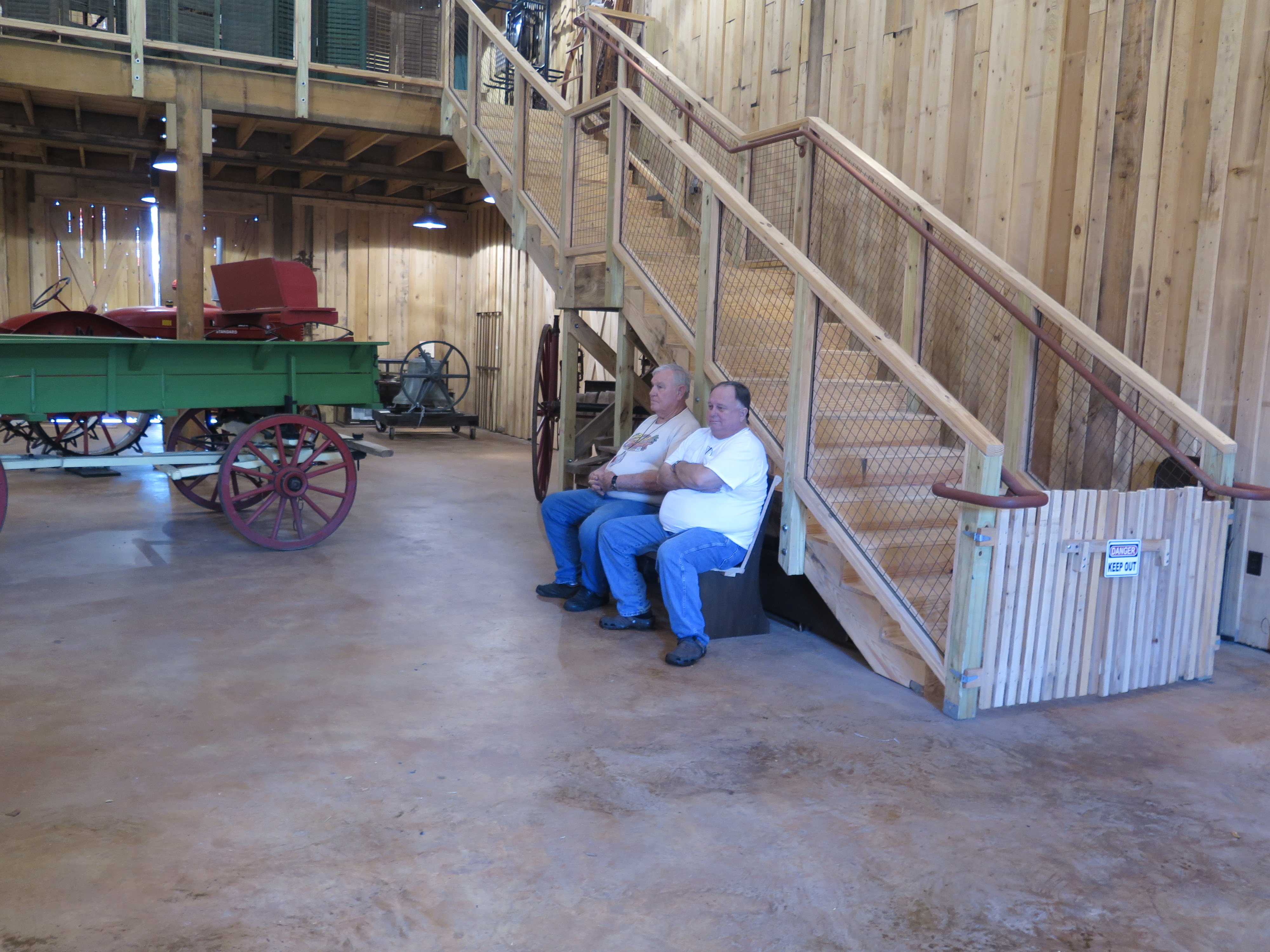 Over the years the West Baton Rouge Historical Association has moved old and significant buildings from around the parish to the grounds of the museum including slave cabins, circa 1830 French Creole Aillet House, shotgun house, and most recently, an old barn. Several rooms in the barn have added much needed workshop space. Here are two “non-players” enjoying the morning and music and waiting for a workshop to end.