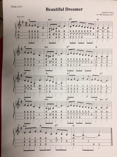“Beautiful Dreamer” has a sharp at the first note, or a D# note–a note not found on the dulcimer fretboard while tuned to DAD in the Key of D. This one note, oddly enough, gives the song it’s character. Omit this note and the song is missing something.