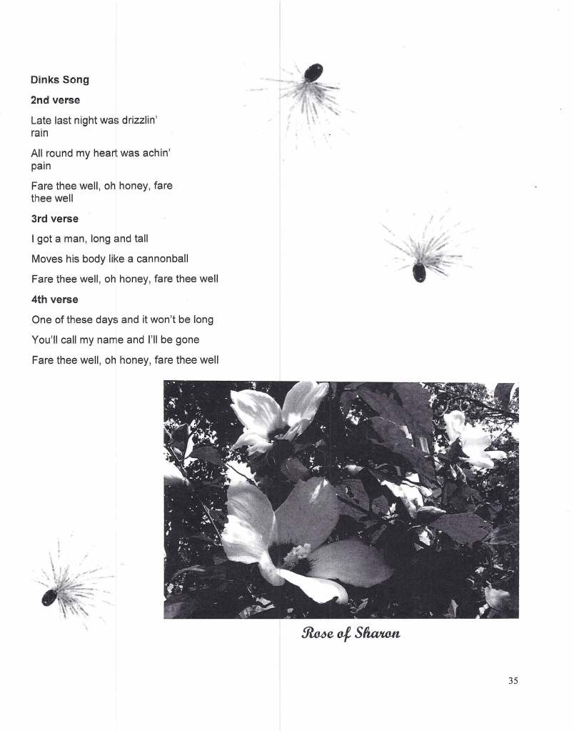 And Judy Klinkhammer’s lyrics with a Rose of Sharon blossom. You can find additional lyrics on many internet sites.