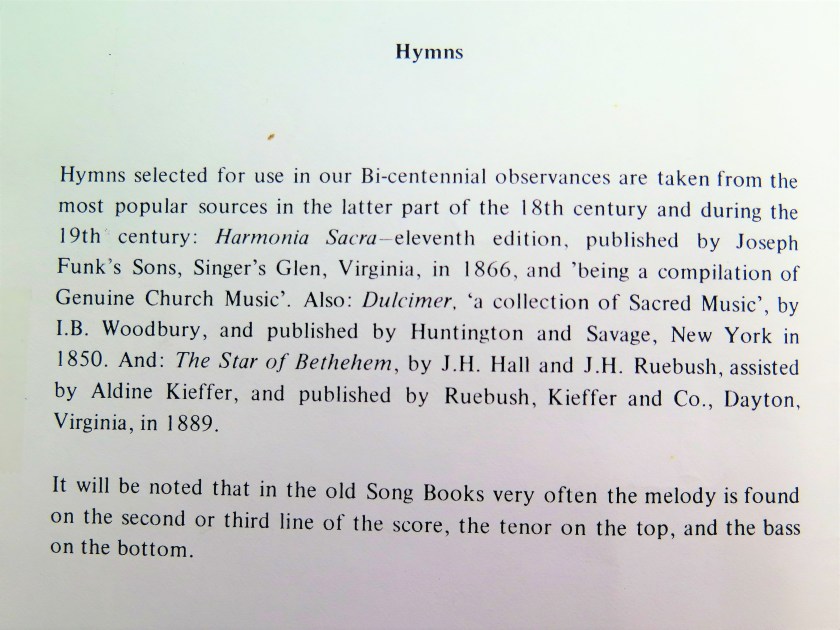 Music was a strong part of these people’s lives. Zithers and other variants of dulcimers have been collected from the area. Several music publishers thrived in the 1800’s and 1900’s in this area publishing a variety of shape note hymnals. As this county reach it’s 200th year, various memorabilia were collected for the celebration, including this brochure.