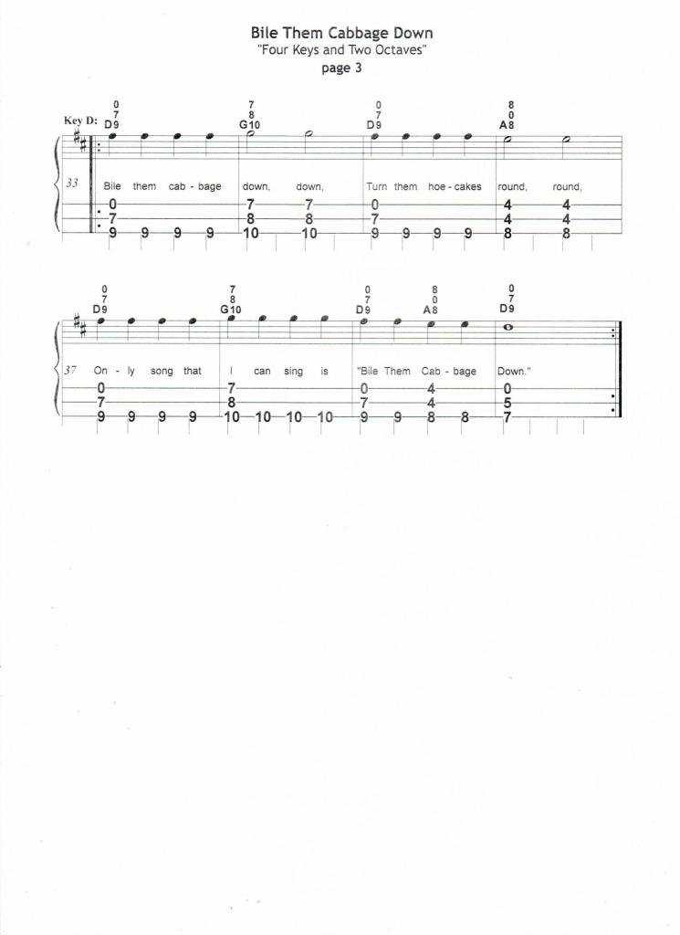 The first tune played by our “Lagniappe group” was “Bile Them Cabbage Down.” To give the tune a twist and some pizzaz, we played the song in three different keys. For this post, I have added a fourth key and a second octave, too. At the SugarFest recording, we did not play Part B of the tune (sometimes called the “break”) and I omitted it here. We only played the song’s melody part.