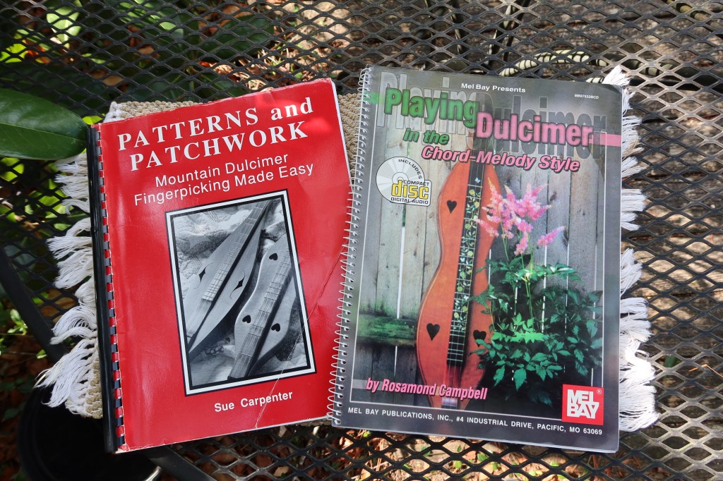I am the type of learner who appreciates written material. I have two favorite references regarding fingerpicking which are as pertinent today as they were years ago. During one of my early participations in the “Appalachian State Dulcimer Workshop” in Boone, North Carolina, I took a fingerpicking class taught by Sue Carpenter. She wrote the book, “Patterns and Patchwork,” and describes it as “mountain dulcimer fingerpicking made easy.” This book details fingerpicking from basic patterns to more advanced songs and gives lots of examples. I highly recommend it. It is available on her internet site (https://suecarpenter.net/).