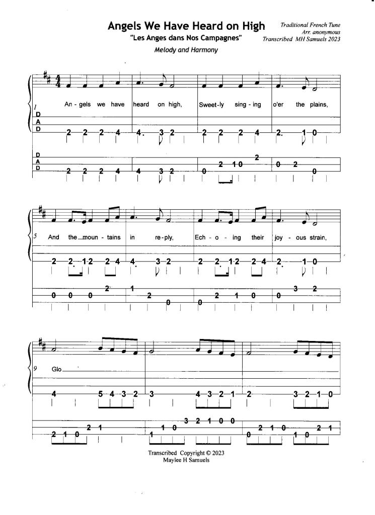 Enjoy this arrangement of “Angels We Have Heard on High.” A PDF file which you can download and share and play follows.
