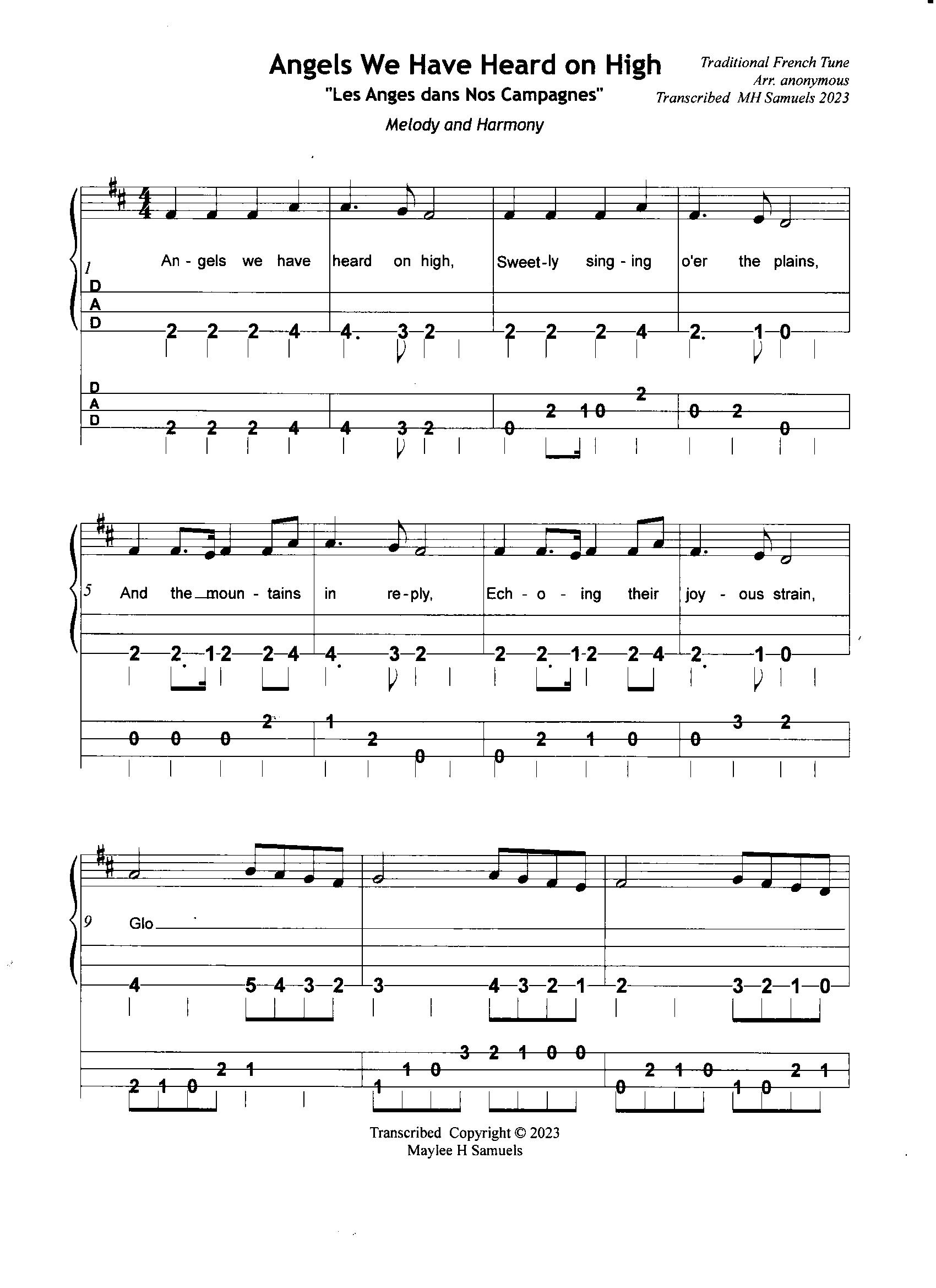 Enjoy this arrangement of “Angels We Have Heard on High.” A PDF file which you can download and share and play follows.