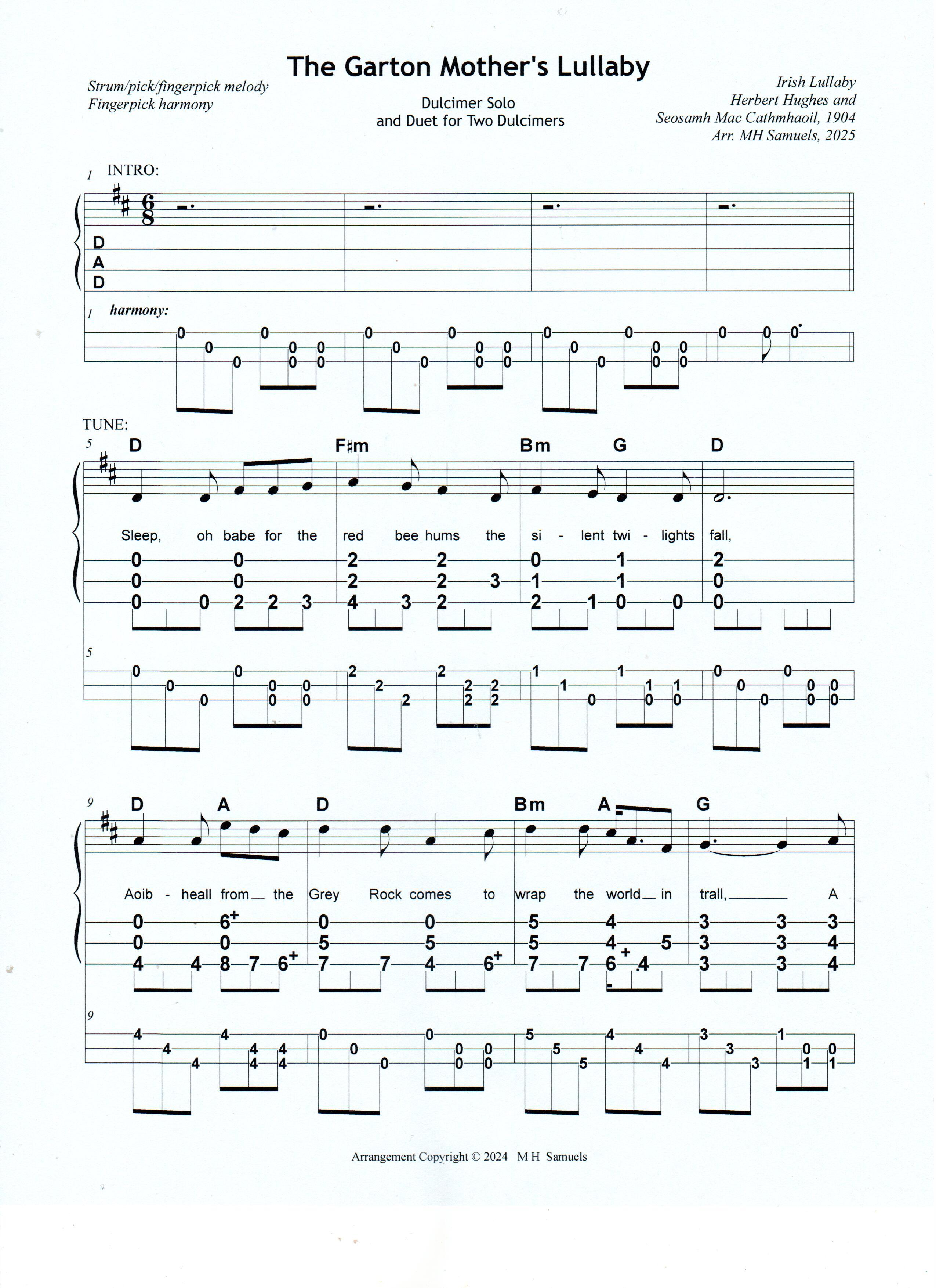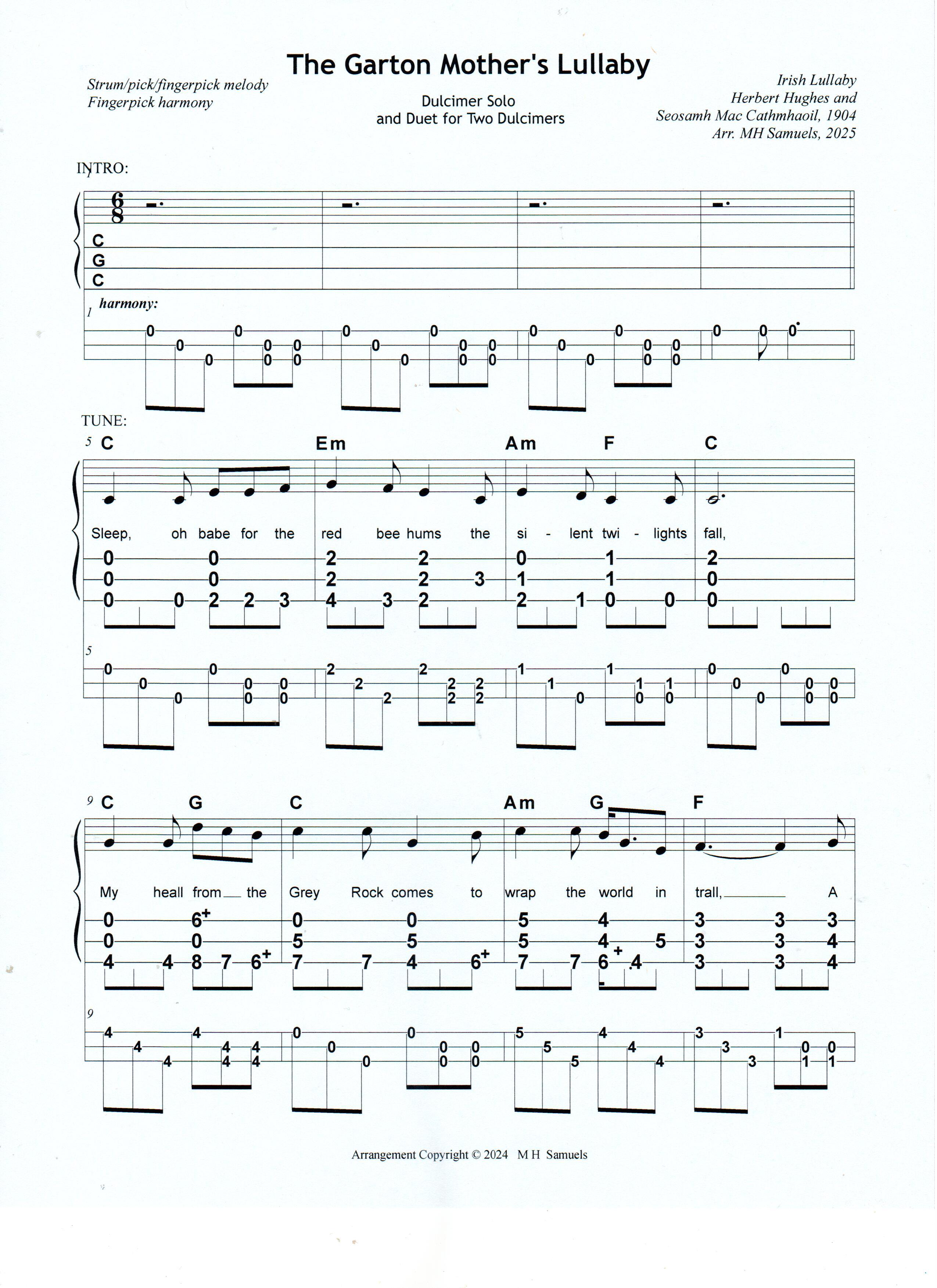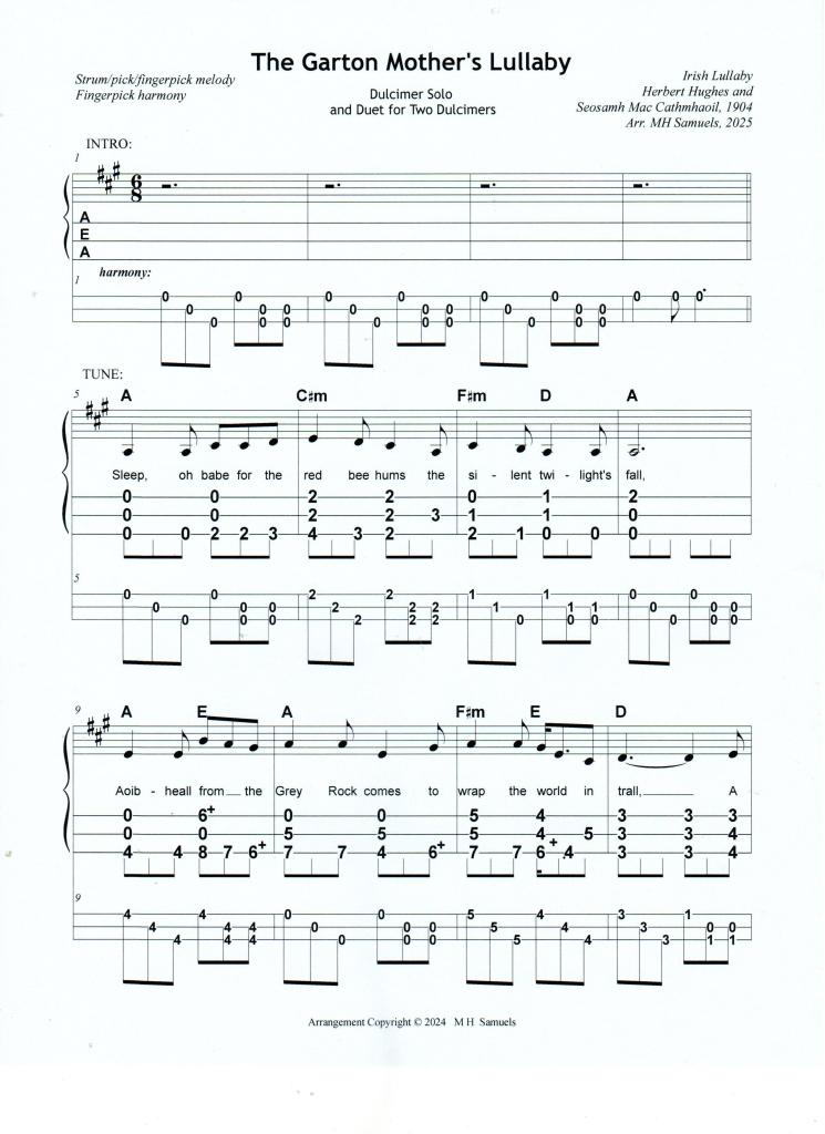 Arrangement of “The Garton Mother’s Lullaby” for dulcimer