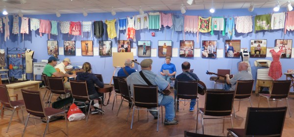 What is Dan Delancey doing teaching a guitar class in a room full of aprons at a dulcimer festival? The West Baton Rouge Museum is perhaps