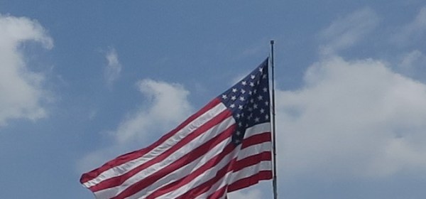 A huge flag soars in the blue sky sky overhead, as I drive west along a major street in Baton Rouge. It is the largest